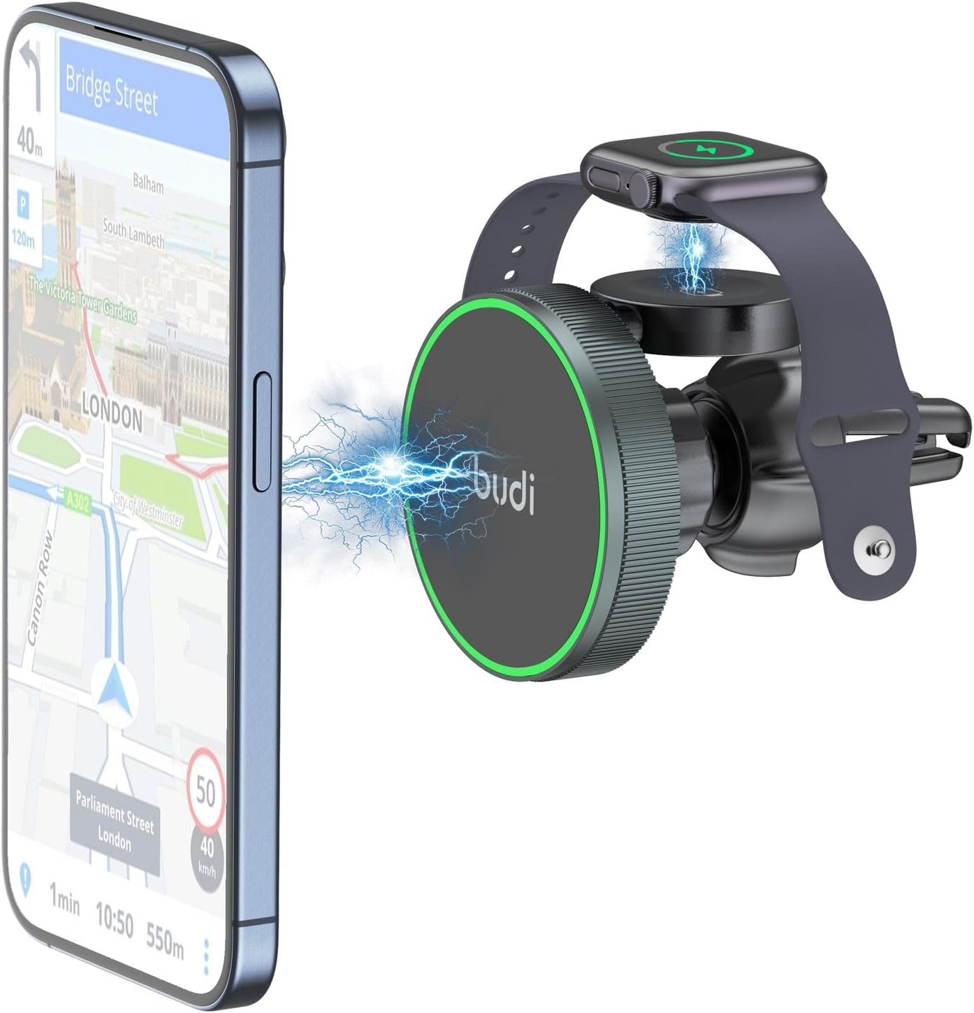 Budi 2 in 1 Universal Magnetic Wireless Car Charger Holder CM570B