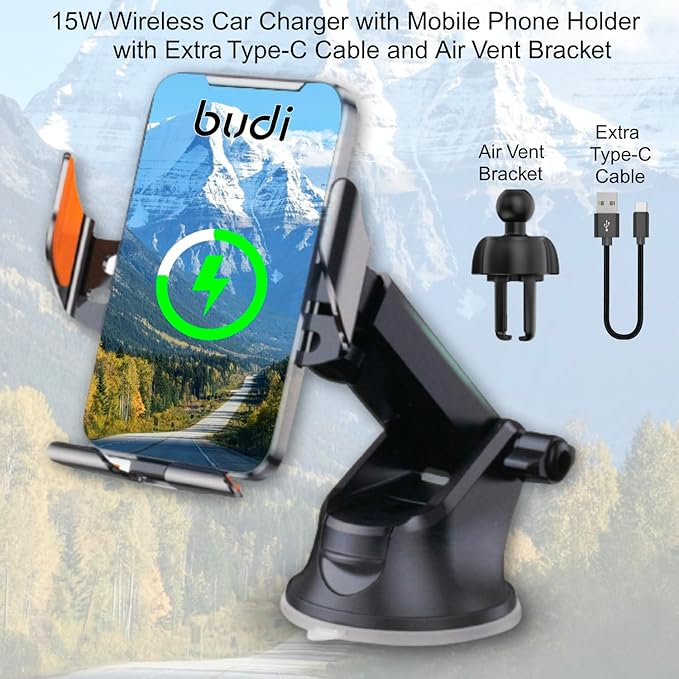 Budi 15W Wireless Car Charger Phone Holder CM550B