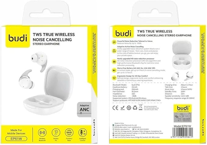 Budi AirPod TWS Wireless Noise Cancelling Stereo EP61W