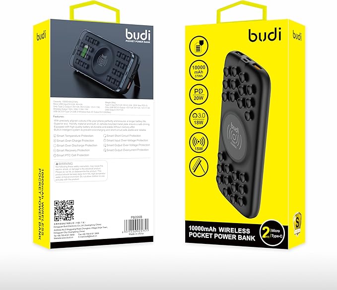 Stay powered up anywhere with the Budi PB099B 10000mAh Wireless Power Bank — the perfect blend of portability, power, and modern convenience.
