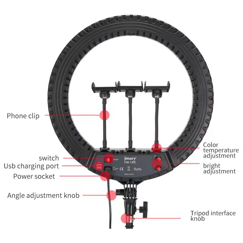 Jmary – 18" LED Ring Light ( no Tripod include) FM-18R