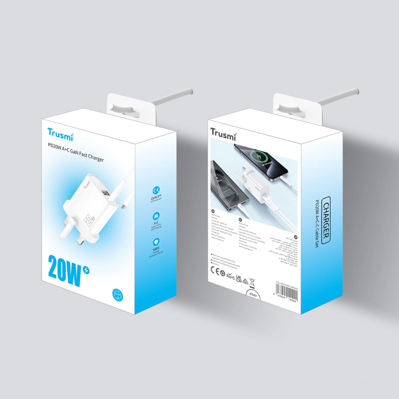 TRUSMI CH11-066 PD20W A+C GaN Fast Charger Set with C to L Cable
