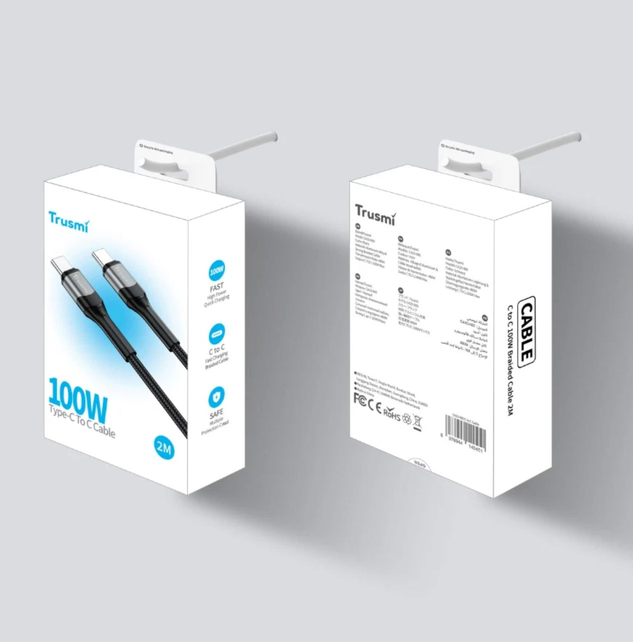 100W Fast Charging Cable 2M Trusmi CA33-060 USB-C to USB-C Braided Black Durable