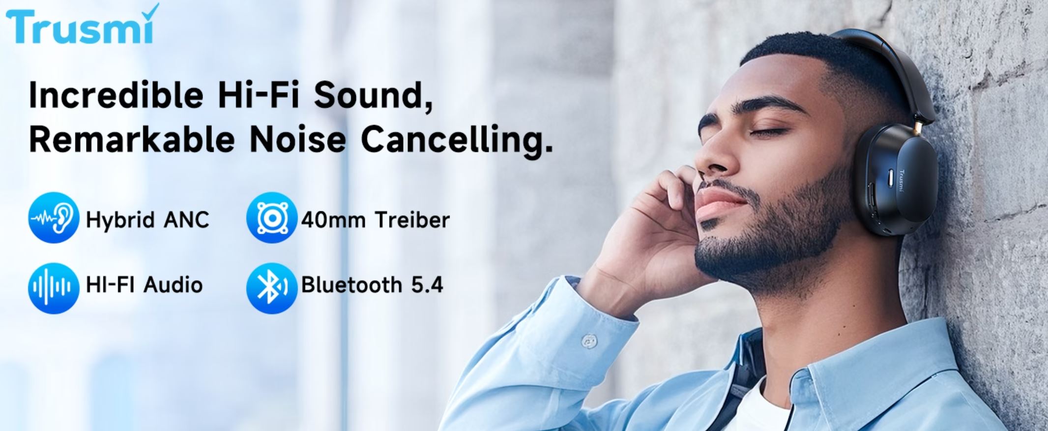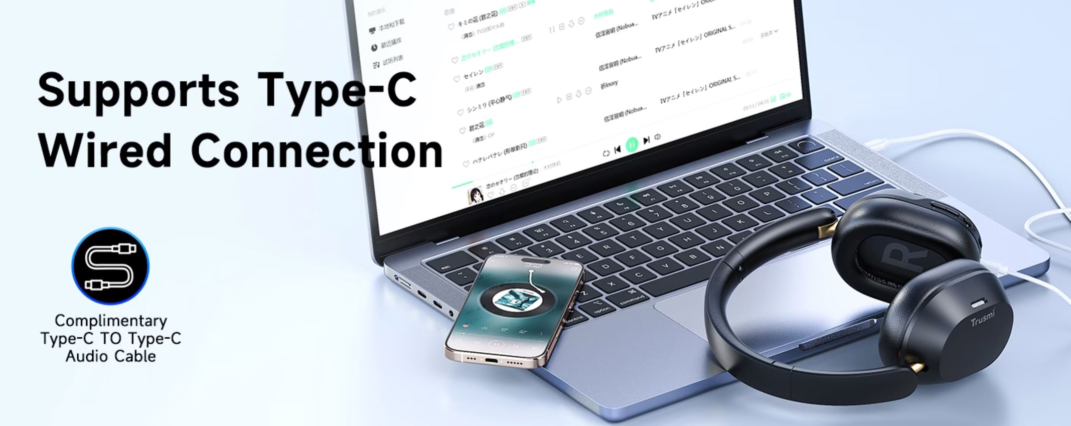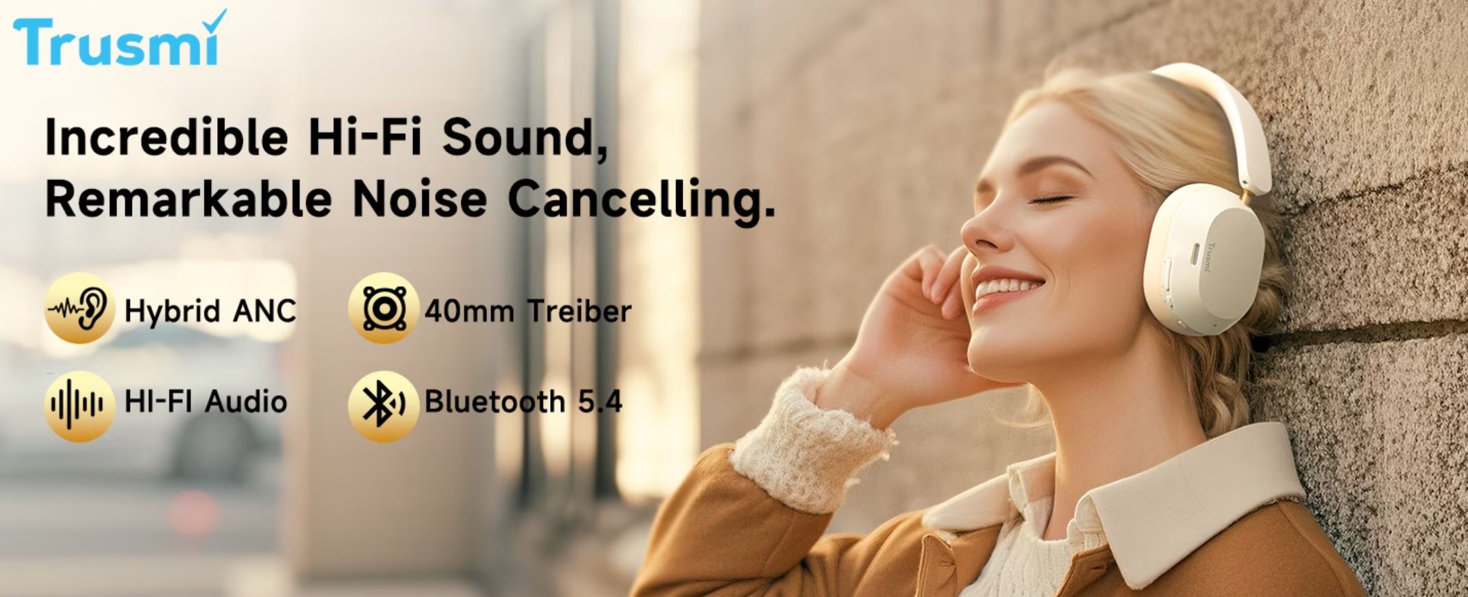 Wireless TRUSMI Hi-Res Headphones with Active Noise Cancellation (ANC) & Hi-Fi Sound