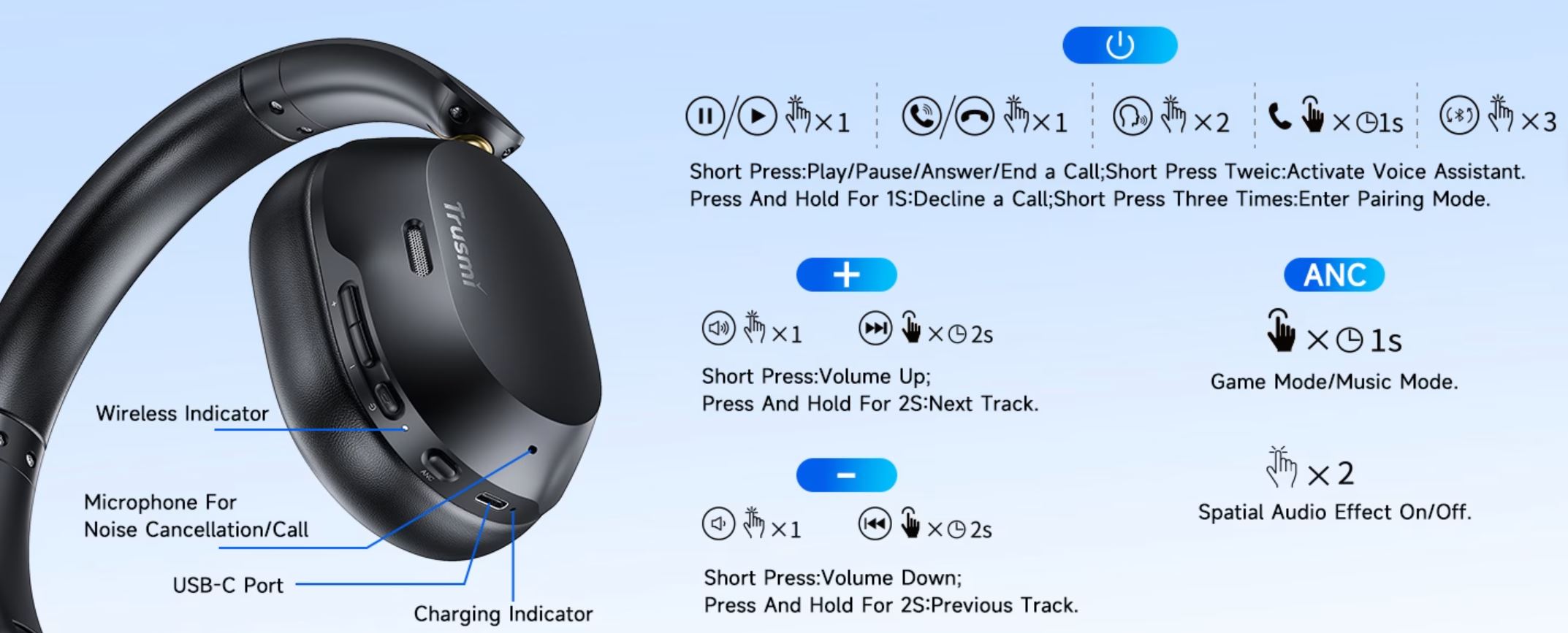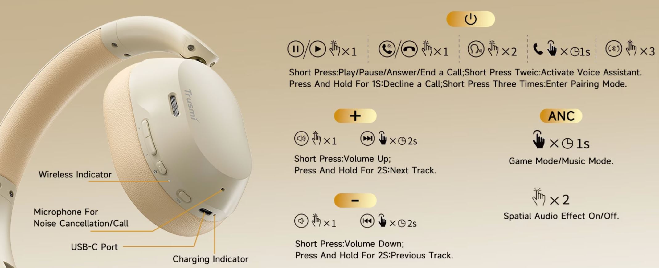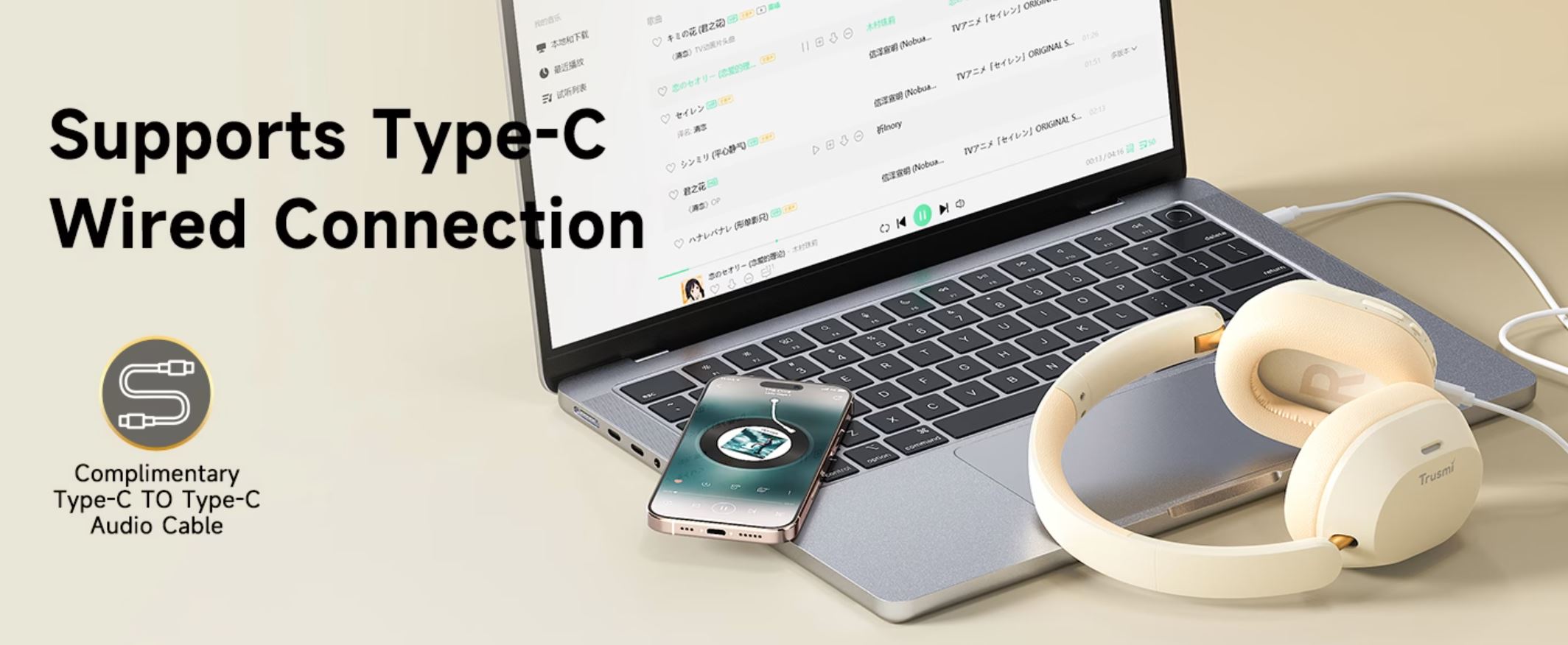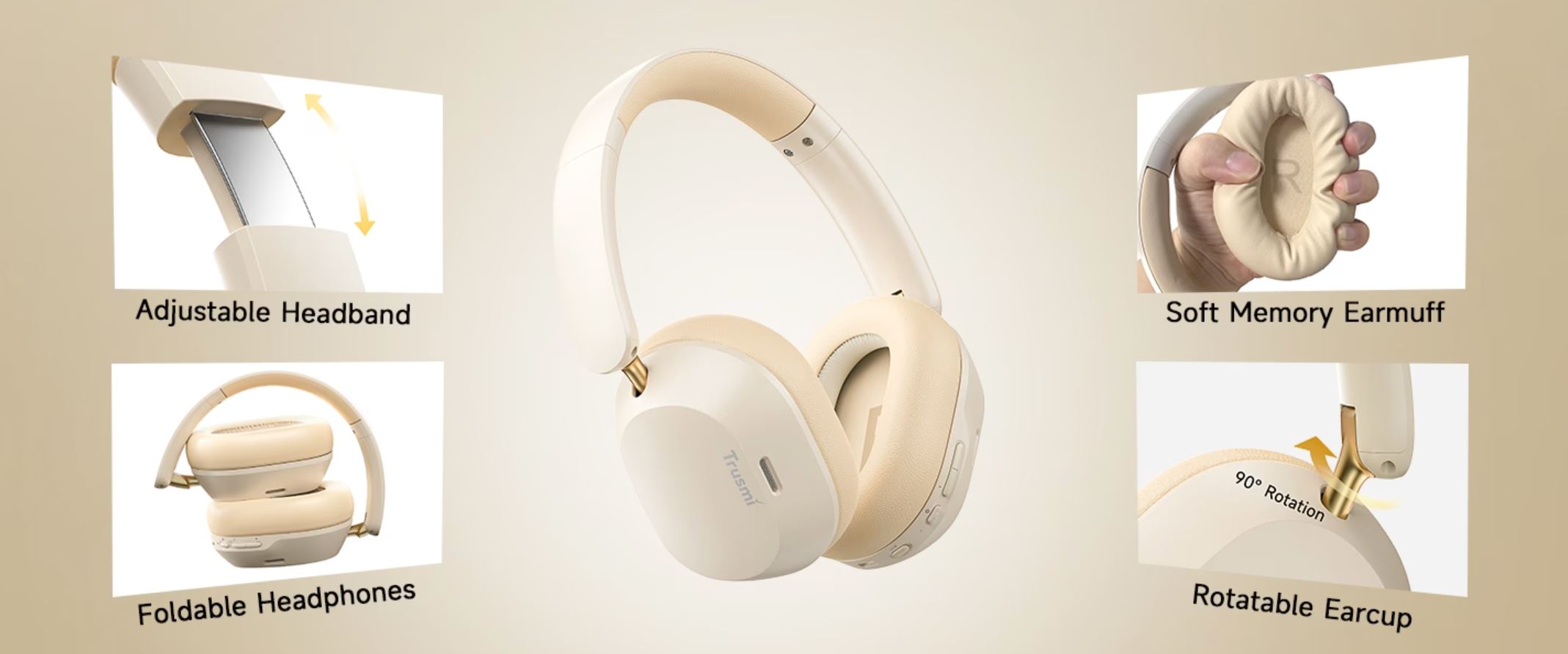 Wireless TRUSMI Hi-Res Headphones with Active Noise Cancellation (ANC) & Hi-Fi Sound
