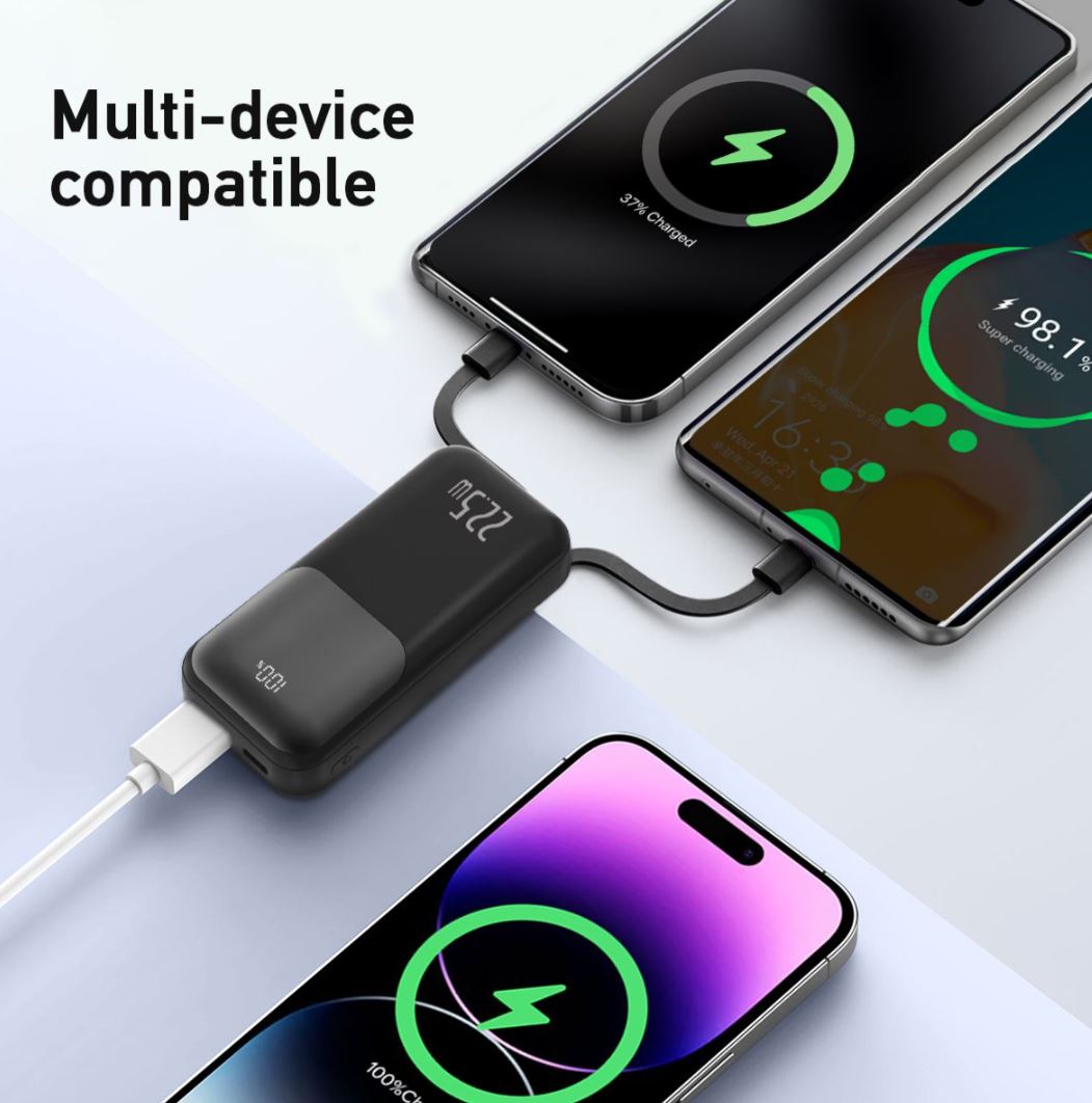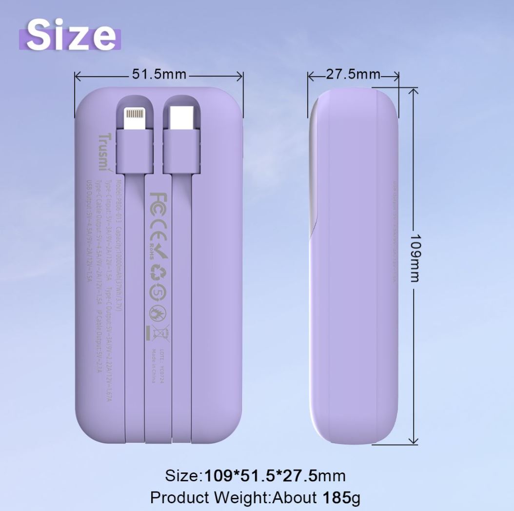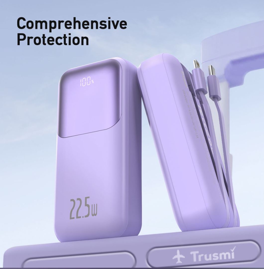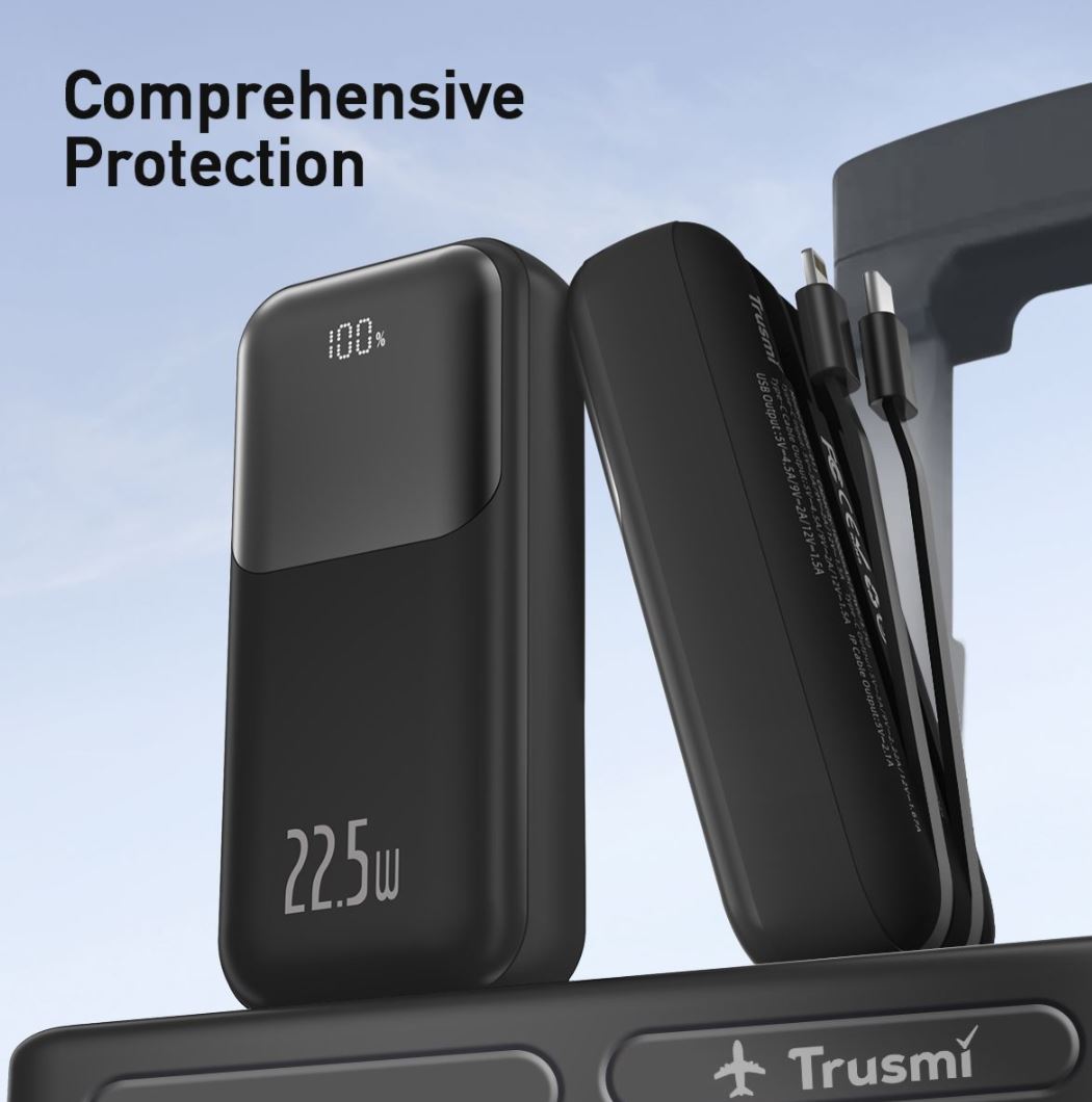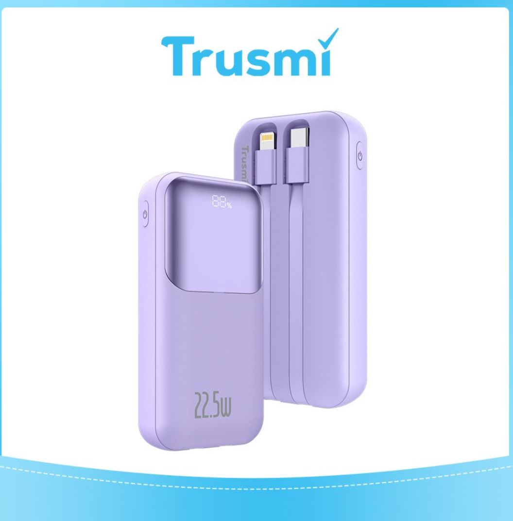 TRUSMI Ultra Mini 10000mAh Power Bank – 22.5W Fast Charging | Built-in Lightning & Type-C Cables | Digital Display